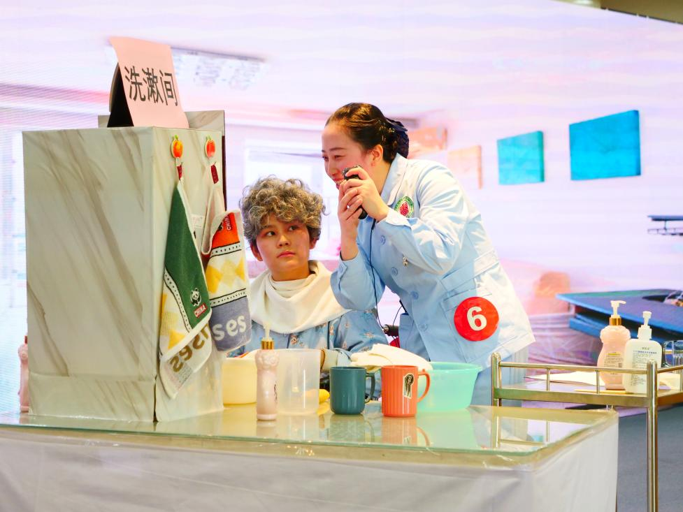 賽場真實還原了日常護理的場景,養(yǎng)老護理員們紛紛亮出看家本領(lǐng)、精湛的專業(yè)技術(shù),“就像是把養(yǎng)老院搬進了賽場,”參賽的護理員說道,“比賽對于我來說,不僅是專業(yè)技能上的操練與比拼,也是一次學習和歷練的機會,同時也讓我對于這份職業(yè)的產(chǎn)生了一種特別的榮譽感與歸屬感?!?/p>